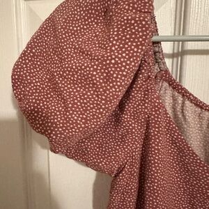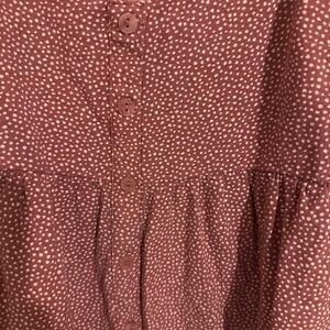 Chic maroon top with button-up front. Features a subtle dotted pattern. Women size xs