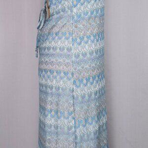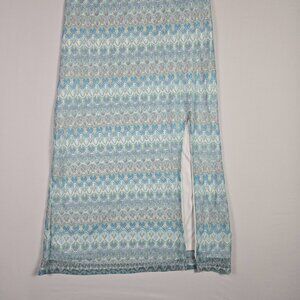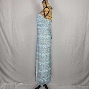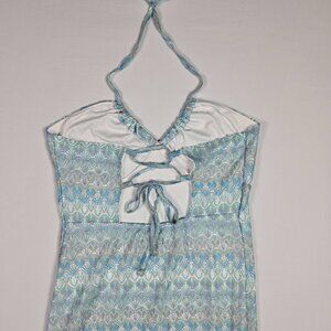 Wild Fable Maxi Halter Dress M Blue Geometric Open Back Tie Slit Y2K Boho Chic