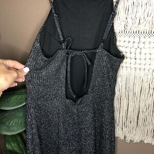 Wild Fable Metallic Wide Leg Cropped Jumpsuit Size XS. Black and silver. Like new. Stretchy. Open back with tie. Adjustable straps. Cropped leg. Wide leg. Smoke-free. Fast Shipper.