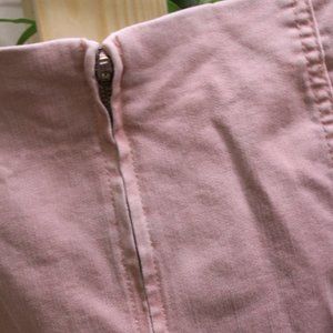 So cute and perfect for summer. The material is stretch denim and it is unlined. It closes with a zipper in the back. I've only worn it a few times, I just don't have many things that go with the color.