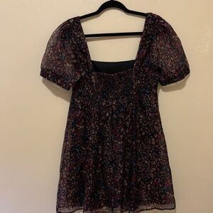 Vibrant floral dress with puff sleeves. Ideal for casual outings.