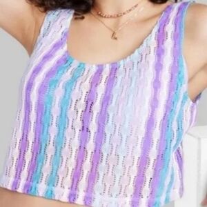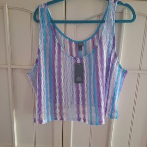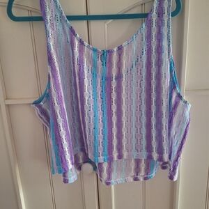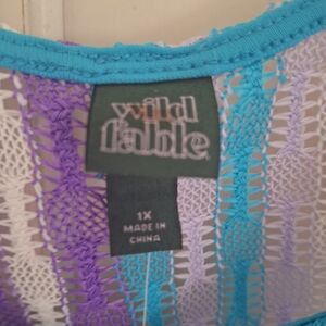 Vibrant knit top by Wild Fable. Features a mix of blue, purple, and white colors. Cropped 1X top . you could wear over suit layer over tank or dress .I love tops like this perfect for styling layered looks