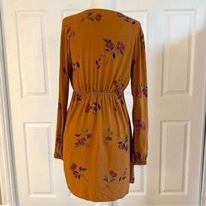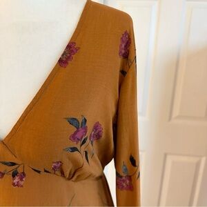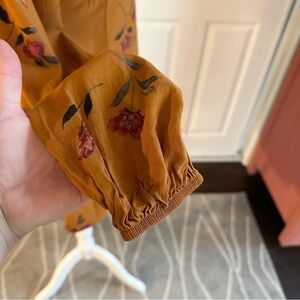 Beautiful and soft mustard gold yellow rayon floral dress by Wild Fable. It has a boho tunic style and would look adorable alone or over some leggings. The long sleeves have elastic at wrist to give the sleeves a bit of volume. In great condition. No stains or holes. 17” pit to pit, 14” across natural waist, 32” full length, 17.5” waist to hem, 23.5” sleeves.