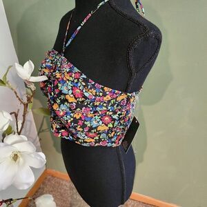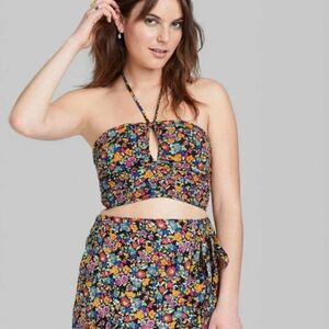 Wild Fable NWT Womens S Floral Keyhole Cutout Front Woven Sleeveless Cropped Top