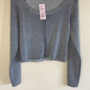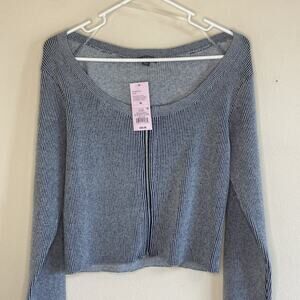 Wild Fable Navy Ribbed Knit Front Full Zip Sweater Shirt Womens Medium NEW NWT