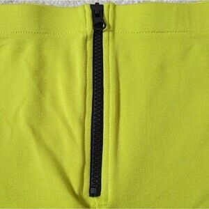 These are so fun but I have nowhere to wear them! Stretchy bike shorts with a working zipper in front. Color is a neon greenish yellow. No stains or other noted damage. Fun for summer!