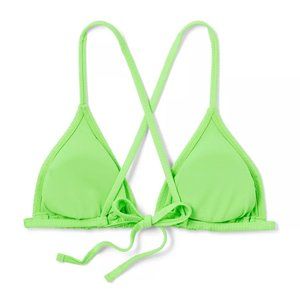 Wild Fable Neon Green Ribbed Triangle String Bikini Top M 8-10 NWT