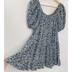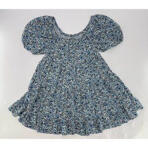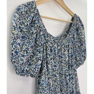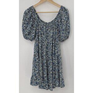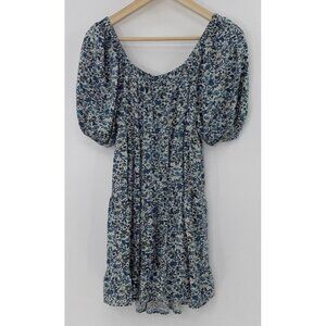 Wild Fable Off The Shoulder Floral Puff Sleeve Blue Mini Dress Sz S Cottagecore