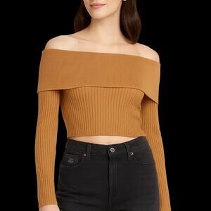 Elevate your fall or winter wardrobe with this cozy and stylish off-shoulder ribbed sweater from Wild Fable. Made in a warm caramel brown color, this knit top features a wide fold-over neckline that can be worn off one or both shoulders, adding a trendy and relaxed touch. Long ribbed sleeves and cropped fit give it a flattering silhouette.
