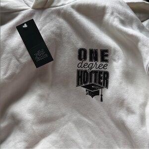 Stay cozy and stylish with this white hoodie. Perfect for casual outings. It’s say one degree hotter 25 . This is the perfect graduation gift 🎁 for a loved one or yourself that’s has gotten a degree in 2025