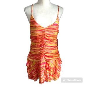 Wild Fable Orange Pink Ruched Ruffle Sleeveless Mini Dress Junior’s Size XXL