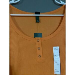 Wild Fable Orange Ribbed Button Short Sleeve Crop Top XXL NWT