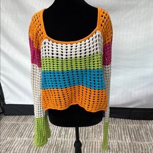 Embrace vibrant style with the Wild Fable Crew Neck Sweater, featuring a striking combination of orange and pink hues. This sweater showcases intricate knit patterns, offering a unique blend of texture and color. Perfect for adding a cheerful touch to your wardrobe, it embodies both comfort and fashion.