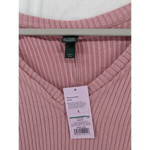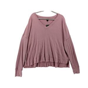 Wild Fable Oversize Sweater L Pink Ribbed Knit Hi Low Boxy Side Slit V Neck Top
