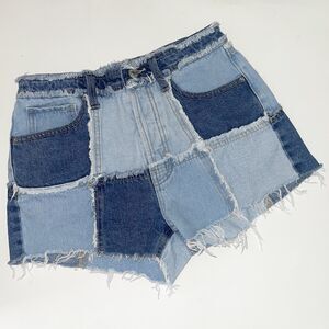 Wild Fable Patchwork Jean Shorts Womens Size 0 Fringed Raw Hem Light Medium Wash