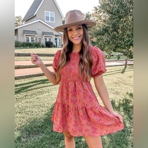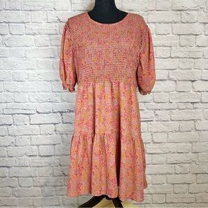 Wild Fable Pink Floral Fit & Flare Ruffle Puff Sleeve Tiered Smocked Dress XXL