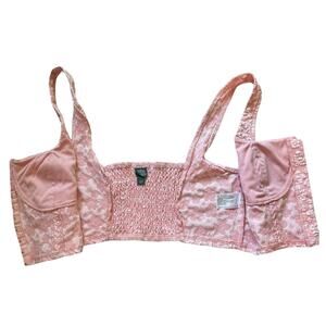 Wild Fable Pink Floral Textured Corset Cropped Tank Top size Large
