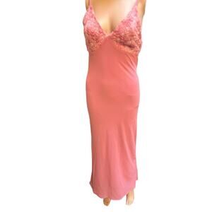 Turn heads in this stunning pink maxi slip dress featuring a romantic lace floral bust and soft, flowing fabric. This feminine piece blends vintage lingerie vibes with modern elegance, perfect for lounging or styling as a statement slip dress.