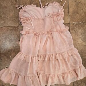Soft and romantic pink ruffle mini dress from Wild Fable, size Small. Lightweight and breezy with a fitted waist and layered details for a flirty, feminine look. Has built in bra pads.