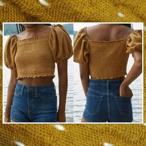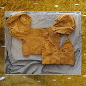 Wild Fable Puff Short Sleeve Smocked Crop Top With Matching Bra Size Small
