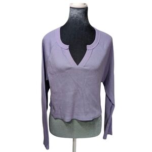 Wild Fable Purple Cropped Waffle Knit Long Sleeve Top