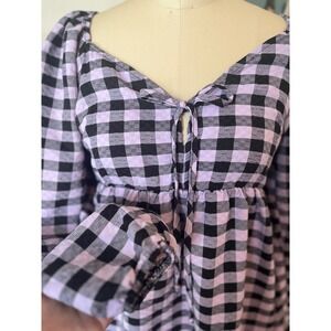 Wild Fable Purple Gingham Babydoll Mini Dress Grunge Soft Alt Cottagecore Sz M