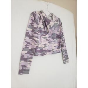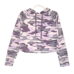 Wild Fable Purple & Gray Camo Crop Raw Hem Hoodie. Size Small