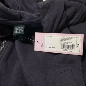 Cozy hoodie with front zipper. Features a hood and pockets. Perfect for casual wear.
