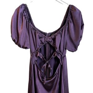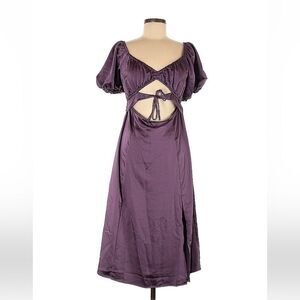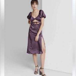 Target Wild Fable Purple Satin Midi Dress Puff Sleeves Midriff Cutouts Size Medium