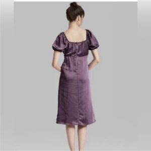 Wild Fable Purple Satin Midi Dress Practical Magic VibesPuff Sleeves Size Medium