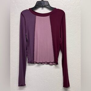 Wild Fable Purple Spliced Lettuce Trim Edge Long Sleeved Tee Shirt - S