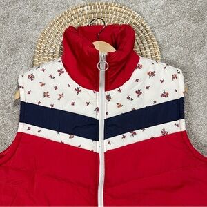 Wild Fable Red Multi Poppy Full Zip Puffer Nylon Vest Retro 90s Style Size XL