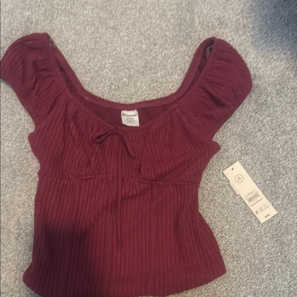 Wild Fable Red Ribbed Ruched Blouse