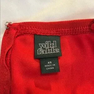 Step out in style with this Wild Fable bodycon dress, featuring a striking red hue and ruched detailing for a flattering fit. Designed with a square neckline and spaghetti straps, this sleeveless dress is perfect for a night out or cocktail event. The dress's sleek silhouette and elegant design make it a standout choice for any special occasion.
