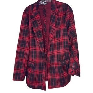 Wild Fable red|black plaid sweatshirt open blazer with collar and button sleeves.