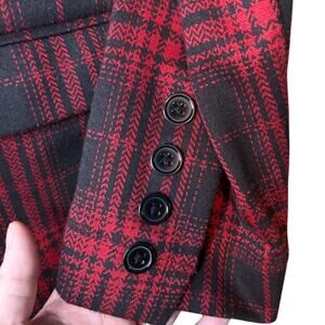 Wild Fable Red/Black Plaid Sweatshirt Blazer Collar Button Sleeves Sweatshirt
