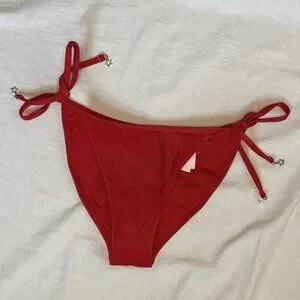 Wild Fable Reds Ribbed Bikini Bottom Adjustable ties at hips Low-res High leg Cheeky Size: small