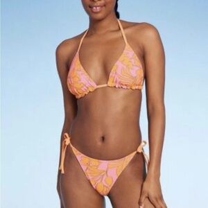 Wild Fable Reversible Floral Pink and Orange Bikini Set XL Extra Large Top / XS