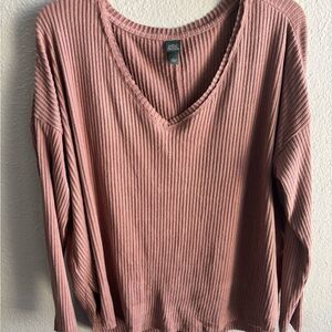 Wild Fable Ribbed V-Neck Long Sleeve Top Excellent condition Mauve Size Large
