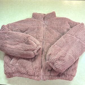 Wild Fable Rose Faux Fur Zippered Puffer Cropped Winter Jacket Small
