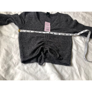 Wild Fable Ruched Drawstring Front V Neck Cropped Long Sleeves