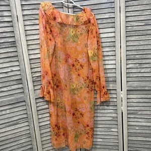 Orange Floral Ruffled Maxi Duster Top.