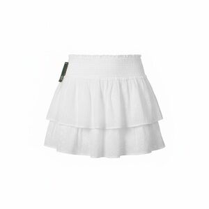 Tiered mini skirt with delicate eyelet fabric. Smocked waistband for a comfortable, fitted feel. Flowy ruffle layers create movement. Breathable and easy to pair with casual tops.