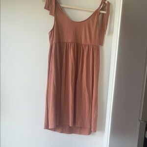 Chic mini dress with a scoop neckline. Features a stylish tie shoulder detail. Perfect for casual outings.
