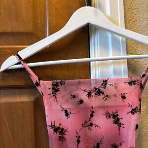 NWT Wild Fable Crisscross Back Flocked Mesh Midi Slip Dress Pink Women's Small
