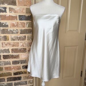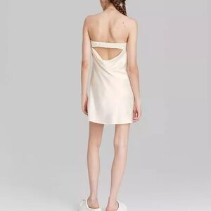 Wild Fable Satin Tube Bandeau Strapless Slip Mini Dress Ivory Champagne Sz S
