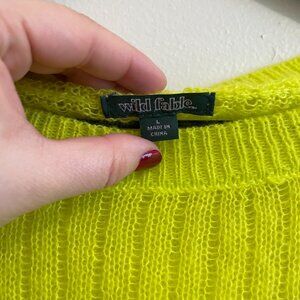 Chartreuse / Yellow / Green - super vibrant color. Sheer sweater material - see photos for how hanger shows through.