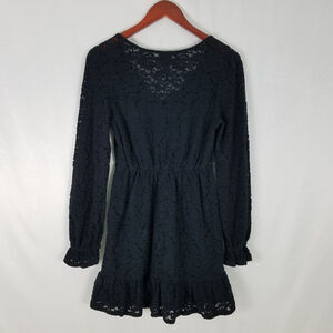 Wild Fable Shirt Dress Womens Extra Small New Black Knit Lace Long Sleeve V Neck