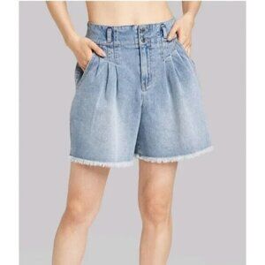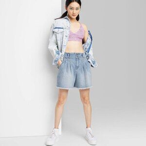 Wild Fable Shorts Blue Highest Rise A Line Pleated Bermuda Denim