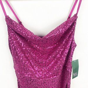 Wild Fable Size Medium Sleeveless Sequin Ruched Side Bodycon Dress Purple Adjustable Straps, Lined, Side Ties
